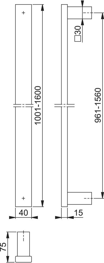 Produktinformationen "HOPPE Stoßgriff E5726 XL,Befestigungsabstand 961-1.560,Länge 1.001-1.600,Durchmesser 40x15,F69"