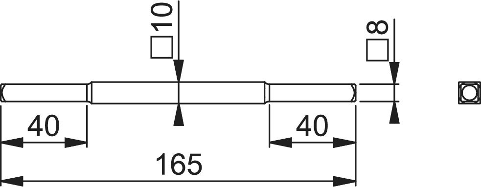 Vierkantstift STI-VLL-B-RDC; Produkttyp: Vierkantstift; Produkttyp (Hersteller): Vollvierkantstift; Ausführung: abgesetzt; Material: Stahl; Oberfläche: verzinkt; Einsatzbereich: Türdrücker; Vierkant: 8/10/8 mm; Länge: 165 mm