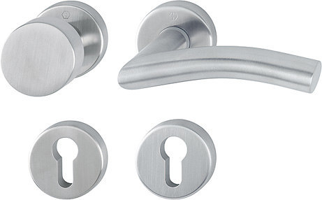 Wechselgarnitur Antwerpen E58/42KV/42KVS/1420Z; Produkttyp: Wechselgarnitur; Produkttyp (Hersteller): Wechselgarnitur; Ausführung: Rosette; Befestigungsart Drückerrosette (außen): verdeckt verschraubt; Befestigungsart Drückerrosette (innen): verdeckt verschraubt; Befestigungsart Schlüsselrosette (außen): verdeckt verschraubt; Befestigungsart Schlüsselrosette (innen): verdeckt verschraubt; Befestigungstechnik: mit Stütznocken; Montageart: aufliegend; Form Drückerrosette: rund; Form Schlüsselrosette (außen): rund; Form Schlüsselrosette (innen): rund; Vierkant: 8 mm; Material: Edelstahl; Form Türgriff (innen): gebogen; Form Türgriff (außen): Flachknopf; Ausführung Türgriff (außen): fest; Gewinde Knopf/Griffplatte: M12; Durchmesser Türgriff (innen): 20 mm; Durchmesser Türgriff (außen): 50 mm; Durchmesser Schlüsselrosette: 52 mm; Länge Türgriff (innen): 124 mm; Höhe Türgriff (innen): 59 mm; Höhe Türgriff (außen): 40 mm; Durchmesser Drückerrosette (außen): 52 mm; Durchmesser Drückerrosette (innen): 52 mm; Höhe Drückerrosette (außen): 8 mm; Höhe Drückerrosette (innen): 8 mm; Höhe Schlüsselrosette (außen): 8 mm; Höhe Schlüsselrosette (innen): 8 mm; Lagerung: mit Rückholfeder,wartungsfreies Gleitlager; Einsatzbereich: Haustür; Türart: Vollblatt; Türwerkstoff: Stahl,Holz; Lochung: Profilzylinder gelocht; DIN-Richtung: DIN Rechts; Farbe: grau; Farbton: edelstahl matt; Ausführung Vierkant: Rollenwechselstift; Türstärke: 42 mm; Türstärke min.: 37 mm; Türstärke max.: 42 mm