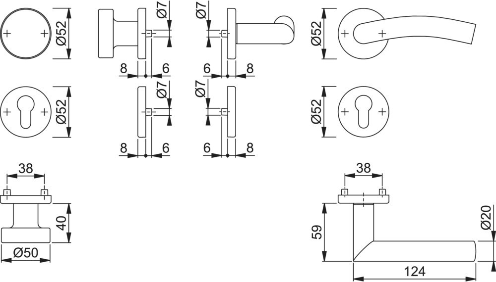 Höhe Drückerrosette (außen): 8.00 MMT