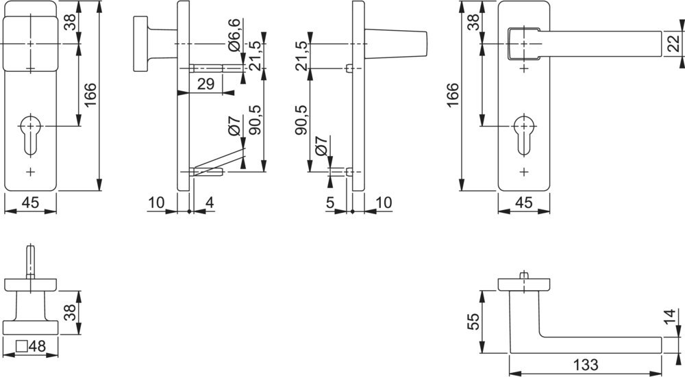 | Form Türgriff (außen): | Flachknopf |
