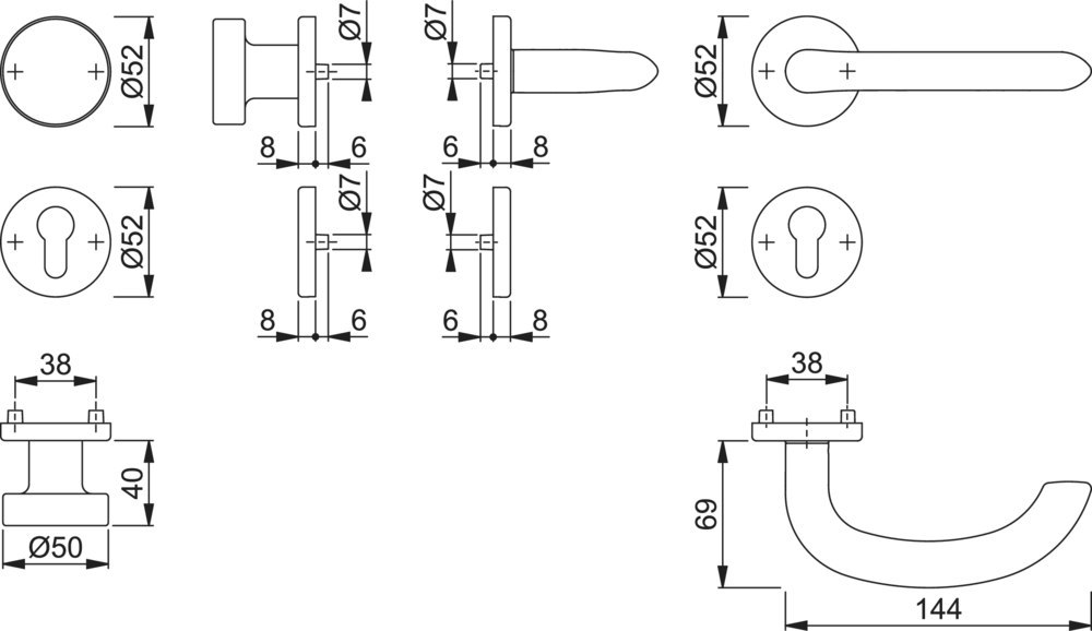 | Höhe Drückerrosette (außen): | 8.00 MMT |
