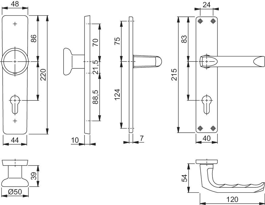 HOPPE®, Zimmertür-Wechselgarnitur, Abdeckung: Langschild, Modell: London, Modellnummer: 54/227/202SP/113, Lochung: Profilzylinder gelocht, Entfernung: 72mm, Vierkant: 8mm, Material: Aluminium, Farbton: naturfarbig, Oberfläche: eloxiert, DIN-Richtung: DIN Links-Rechts, Lagerung: Gleitlager, wartungsfrei, lose, Befestigungsart: innen sichtbar verschraubt, Befestigungstechnik: ohne Stütznocken, Befestigungssystem: Stiftverbindung,Drückerform : gerade,Drückerlänge : 120mm,Drückerhöhe : 54mm, Eigenschaft: Knopf fest auf Schild,Knopfform : rund, Knopfdurchmesser: 50mm, Knopfhöhe: 39mm, Anschlagrichtung: Drücker rechts/links verwendbar, Drückerbefestigung: Profilstift, Form: konisch, Schildlänge außen: 220 mm, Schildbreite außen: 44/48 mm, Schildstärke außen: 10mm, Schildlänge innen: 215 mm, Schildbreite innen: 40 mm, Schildstärke innen: 7mm, Türstärke min.: 37mm, Türstärke max.: 42mm, Türart: Außentüren, Türwerkstoff: Holz, Stahl