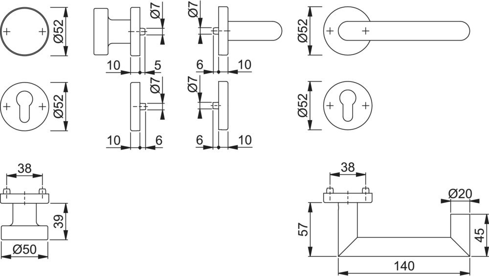 Höhe Schlüsselrosette (außen): 10.00 MMT