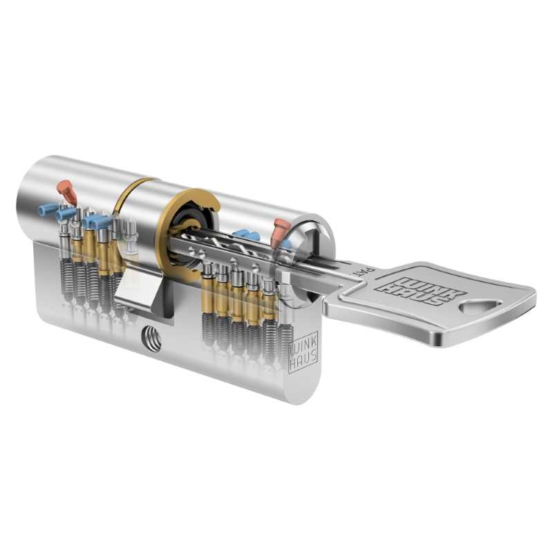 Durch das variable Längstprofilsystem werden einführungen unberechtigter Schlüssel dauerhaft verhindert. Das geschützte profil mit Sicherungskarte bietet einen hohen Aufbohrschutz durch 6 federbelastete Stahl-Stiftepaare und eine zusätzliche Abfrage der Radialstifte durch Bohrmulden im inneren des Zylinders.