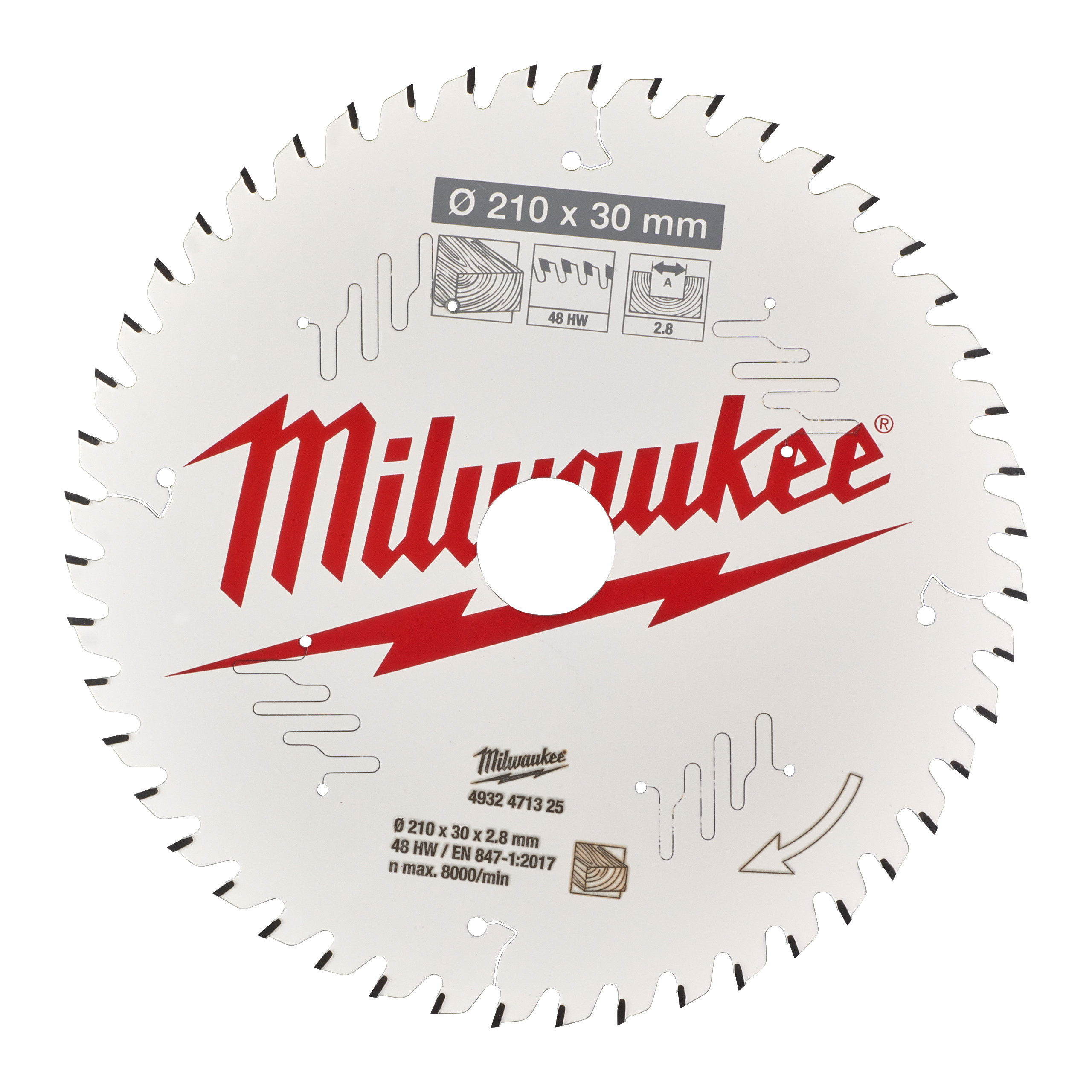 Produktinformationen "Milwaukee Kreissägeblatt 210/30 mm Z48 Wechselzahn Holz für Tischkreissägen"