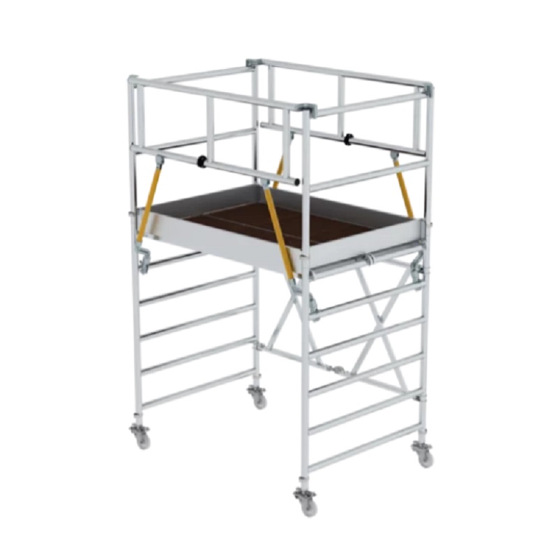 Das Gerüst steht in drei unterschiedlichen Plattformhöhen (2080, 3200 oder 4040 mm) und mit zwei unterschiedlichen Plattformbreiten (0,75 / 1,35 m) zur Auswahl.