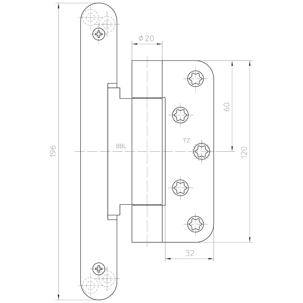 SIMONSWERK, Objekttür-Band, Modell: VARIANT®, Modellnummer: VN 2927/120 Compact, Bandkonstruktion: 2-teilig, Material: Edelstahl, Farbton: edelstahl, Oberfläche: matt gebürstet, Lagerung: verdeckt liegende, wartungsfreie, Axial-Radial-Gleitlager, Rollenlänge: 120 mm, Ausführung: mit Aufnahmeelement, DIN-Richtung: DIN Links-Rechts, Anwendung: Blockzarge, Anzahl Schraublöcher: 5 St., Befestigungsart Flügelteil: zum Anschrauben, Befestigungsart Rahmenteil: zum Anschrauben, Feuerbeständigkeit: Klasse 1, Fräserdurchmesser: 24 mm, Funktionsbereich: Feuerschutz, Rauchschutz, Breite Flügelteil: 24 mm, Höhe Flügelteil: 196 mm, Breite Rahmenteil: 32 mm, Höhe Rahmenteil: 120 mm, Verstellbar: 3 Dimensional, Andruckverstellung min.: -1 mm, Andruckverstellung max.: 1 mm, Höhenverstellung min.: -3 mm, Höhenverstellung max.: 3 mm, Seitenverstellung min.: -3 mm, Seitenverstellung max.: 3 mm, Kopfausbildung: Flachkopf, Korrosionsbeständigkeit: Klasse 5, Materialstärke: 3,5 mm, Rollendurchmesser: 20 mm, Schraubendurchmesser: 5 mm, Schraubenlänge: 50 mm, Stiftausführung: Schraubstift, innenliegend, verdrehsicher, Stiftdurchmesser: 10 mm, Tragkraft pro Flügel (1 x 2 m) bei zwei Bändern: 120 kg, Türwerkstoff: Holz, Stahl, Türausprägung: stumpf, kombinierbar mit: VN 2900/120