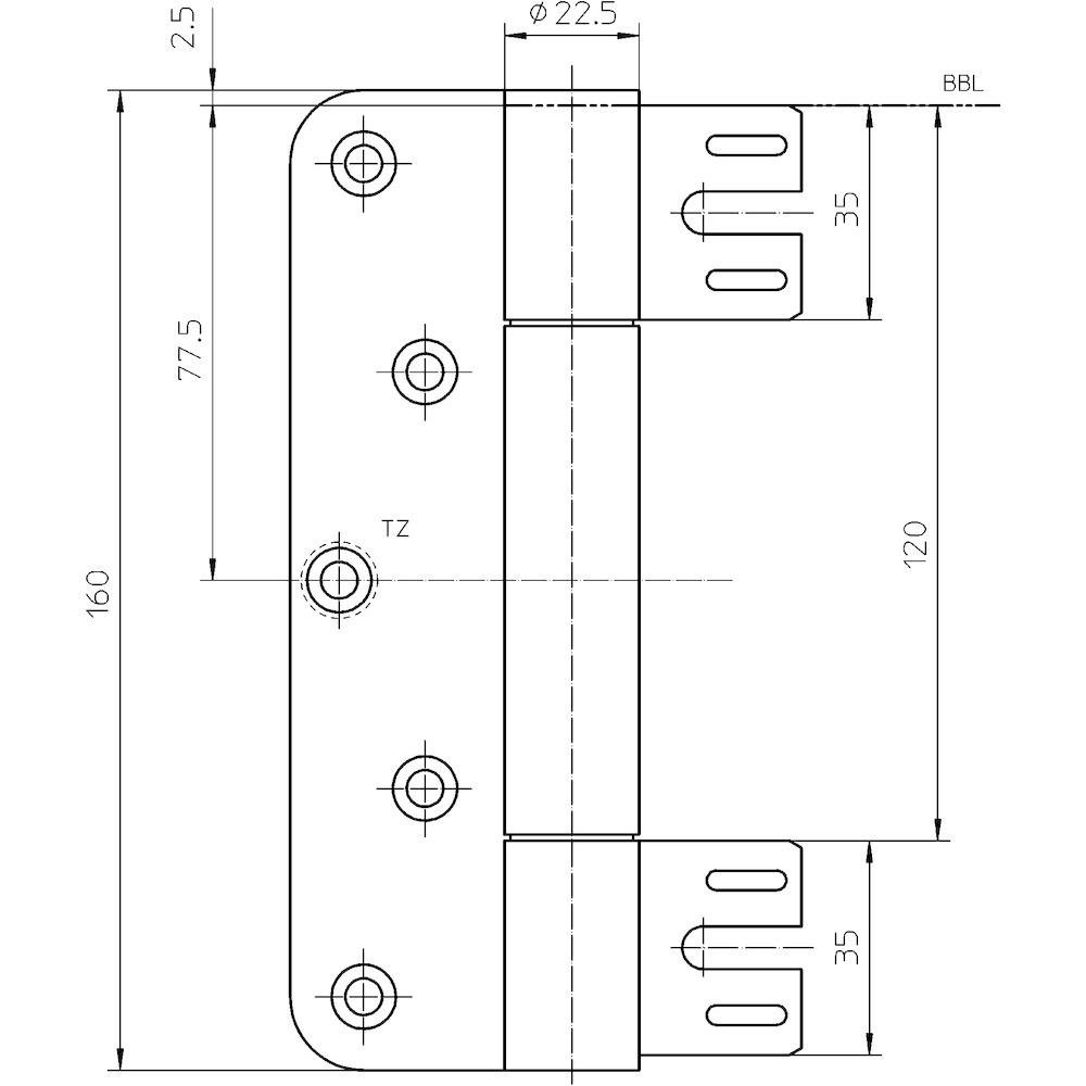 SIMONSWERK, Objekttür-Band, Modell: VARIANT®, Modellnummer: VN 8948/160, Bandkonstruktion: 2-teilig, Material: Edelstahl, Farbton: edelstahl, Oberfläche: matt gebürstet, Lagerung: verdeckt liegende, wartungsfreie, Axial-Radial-Gleitlager, Rollenlänge: 160 mm, DIN-Richtung: DIN Links-Rechts, Anwendung: Stahlzarge, Anzahl Schraublöcher: 5 St., Befestigungsart Flügelteil: zum Anschrauben, Befestigungsart Rahmenteil: zum Einstecken, Feuerbeständigkeit: Klasse 1, Fräserdurchmesser: 24 mm, Funktionsbereich: Feuerschutz, Rauchschutz, Breite Flügelteil: 33 mm, Höhe Flügelteil: 160 mm, Breite Rahmenteil: 24,5 mm, Höhe Rahmenteil: 35 mm, Verstellbar: fest, Kopfausbildung: Flachkopf, Korrosionsbeständigkeit: Klasse 5, Materialstärke: 3,5 mm, Rollendurchmesser: 22,5 mm, Schraubendurchmesser: 5 mm, Schraubenlänge: 50 mm, Stiftausführung: Schraubstift, innenliegend, verdrehsicher, Stiftdurchmesser: 10 mm, Tragkraft pro Flügel (1 x 2 m) bei zwei Bändern: 160 kg, Türwerkstoff: Holz, Stahl, Türausprägung: stumpf, kombinierbar mit: V 8600, V 8610
