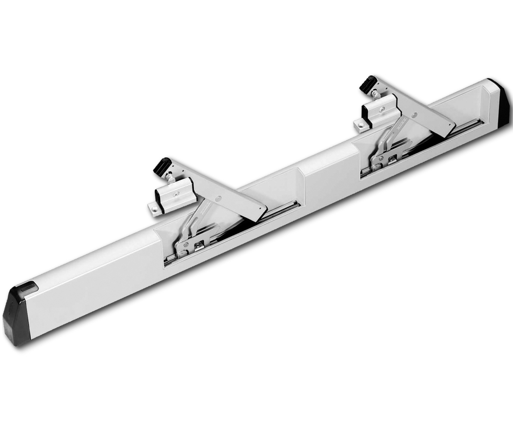 GEZE Rauchwärmeabzug Scherenantrieb, Betriebsspannung: 230, Stromart Betriebsspannung: AC, Modell: E 170/2, Ausführung: mit Flügelbock, 2-scherig, Farbton: verkehrsweiß, RAL Farbton: RAL 9016, Oberfläche: lackiert, Länge: 900 mm, Breite: 900 mm, Höhe: 35 mm, Tiefe: 85 mm, Befestigungsart: Zum Anschrauben, Flügelbreite min.: 900 mm, Öffnungsweite: 170 mm, Schutzart: IP42, Hublänge: einstellbar, Leistungsaufnahme: 90 W, Leistungsaufnahme max.: 90 W, Überschlaghöhe min.: 0 mm, Überschlaghöhe max.: 25 mm, Umgebungstemperatur min.: -5 °C, Umgebungstemperatur max.: 60 °C, Frequenz: 50/60 Hz, Einschaltdauer: 25 %, Tragkraft: 100 kg, Montageart: vertikal, Platzbedarf auf Rahmen min.: 40 mm, Fensterwerkstoff: Holz, Kunststoff, Aluminium