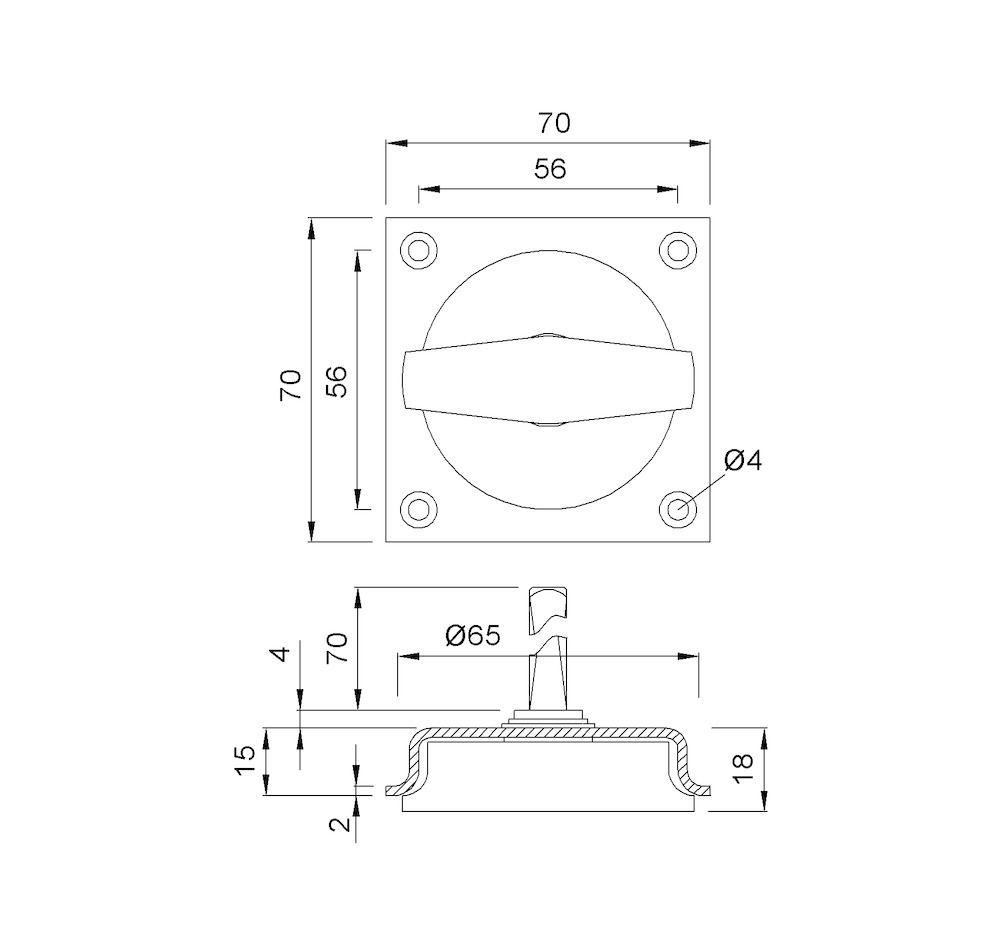 KWS Objekttür Schiebetürmuschelgriff, Modellnummer: 5047, Vierkant: 8, Form: eckig, Befestigungsart: sichtbar verschraubt, Bohrdurchmesser: 65 mm, Material: aluminium, Farbton: silberfarbig, Oberfläche: eloxiert, geschliffen, poliert, DIN-Richtung: DIN Links-Rechts, Lagerung: festdrehbar, Türwerkstoff: Holz, Türart: Schiebetür, Ausführung: Lochteil, mit Drehgriff, Material Griffmulde: aluminium, Material Klappring: aluminium, Breite: 70 mm, Länge: 70 mm, Tiefe: 22 mm, Schraublochdurchmesser: 4 mm, Schraublochentfernung 1: 56 mm, Schraublochentfernung 2: 56 mm