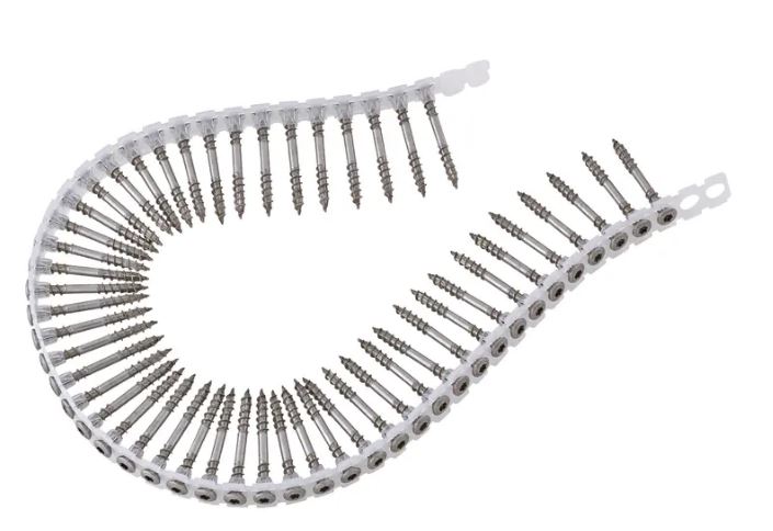 Das Fixiergewinde besteht aus einem Hauptgewinde, welches sich in die Unterkonstruktion einsetzt und dem Unterkopfgewinde. Dieses Unterkopfgewinde sorgt dafür, dass das Deckbrett auf der Unterkonstruktion unter allen Witterungsbedingungen sicher gehalten wird. Der glatte Schaft zwischen den Gewindeteilen nimmt die Bewegungen der Diele auf. Sie müssen nie wieder Holzdielen nachverschrauben, weil sie sich lösen oder zu stark knarren!