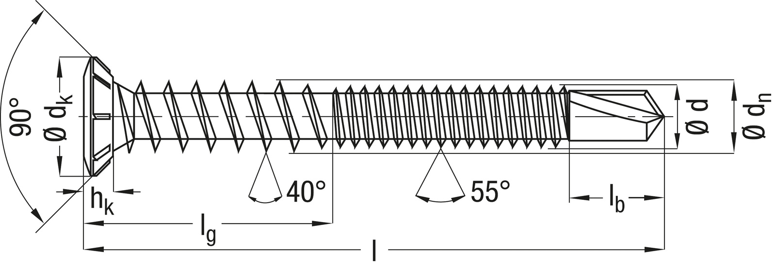 | Feingewinde mit Bohrspitze für Metall, Grobgewinde für Kunststoff: | Erhöhte Sicherheit gegen Überdrehen speziell bei dünnwandigen Kunststoffprofilen, Feingewinde mit Bohrspitze für Metall, Grobgewinde für Kunststoff, Für Kunststofffenster mit Stahlarmierung, Spezialsenkkopf mit angefasten Kopfflanken und Bremsrippen |