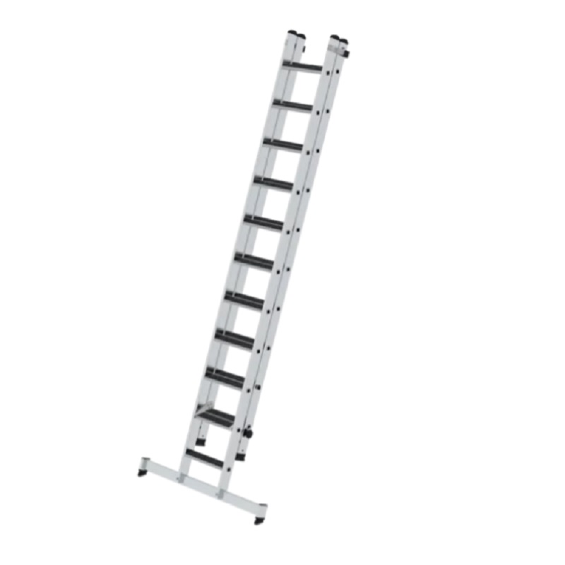 Mit der 2-teiligen Stufen-Schiebeleiter aus dem Hause MUNK haben Sie jederzeit einen sicheren Stand. Dank der nivello-Traverse haben Sie immer einen sicheren Stand und Aufstieg und die optionalen clip-step relax Trittauflagen ermöglichen ein komfortables Arbeiten. Die Oberleiter ist zur Einzelnutzung entnehmbar und verfügt über nivello-Leiterschuhe.