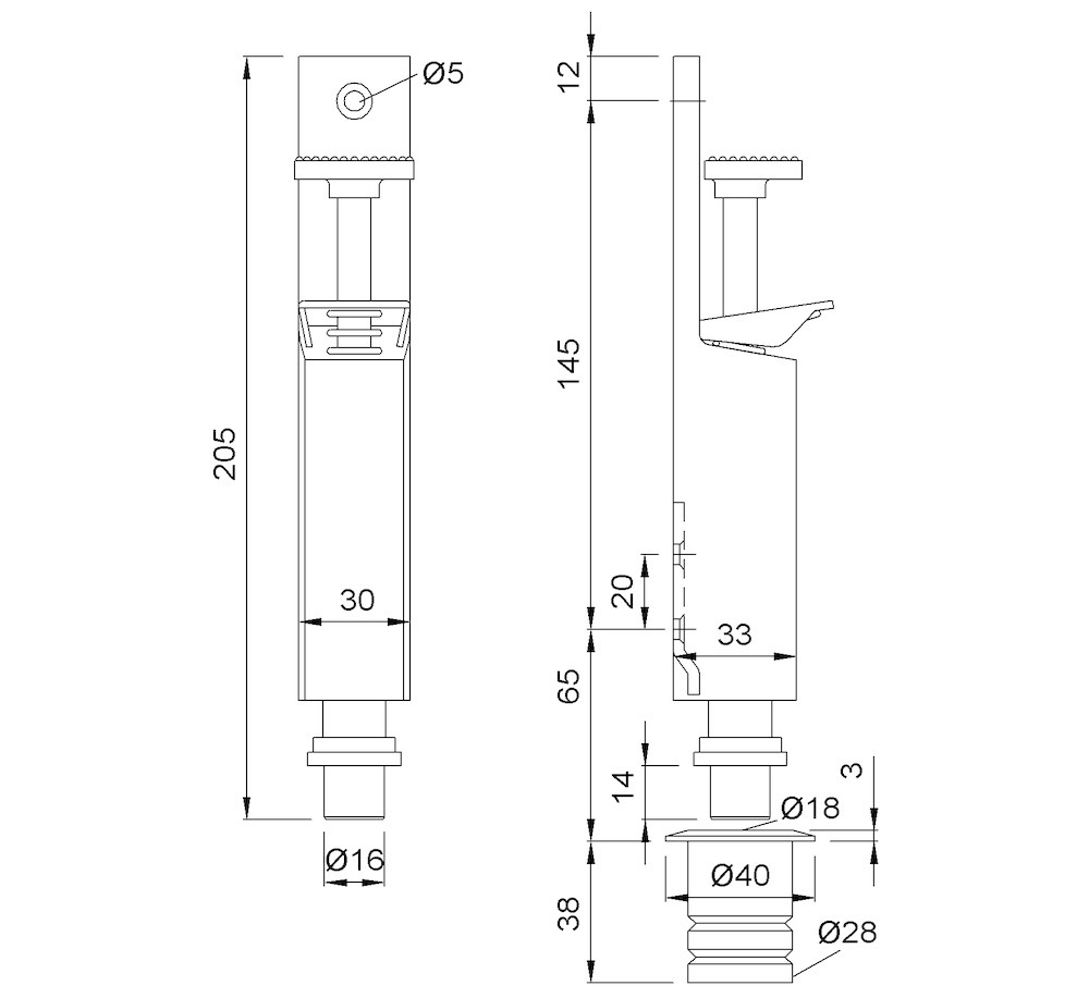 KWS Objekttür Türfeststeller, Ausführung: mit Tretbolzen, mit Klemmplatte, mit Bodenbuchse, Modellnummer: 1037, Befestigungsart: zum Aufschrauben, Material: aluminium, Farbton: silberfarbig, Oberfläche: eloxiert, geschliffen, poliert, Länge: 205 mm, Breite: 30 mm, Tiefe: 33 mm, Hub: 30, DIN-Richtung: DIN Links-Rechts, Türgewicht max.: 100 kg, Material Tretbolzen: edelstahl, Anzahl Schraublöcher: 1 St., Schraublochdurchmesser: 5 mm