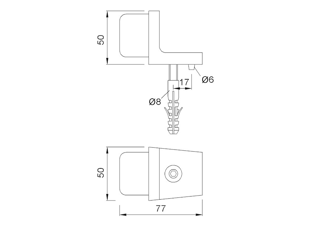KWS Bodentürstopper, Modellnummer: 2031, Material: aluminium, Farbton: silberfarbig, Oberfläche: eloxiert, geschliffen, poliert, Befestigungstechnik: mit Verdrehsicherung, Zapfendurchmesser: 6 mm, Befestigungsart: verdeckt verschraubt, Breite: 50 mm, Höhe: 50 mm, DIN-Richtung: DIN Links-Rechts, Türgewicht max.: 40 kg, Farbe Gummipuffer: schwarz, Durchmesser Dübel: 8 mm, Türart: Innentür