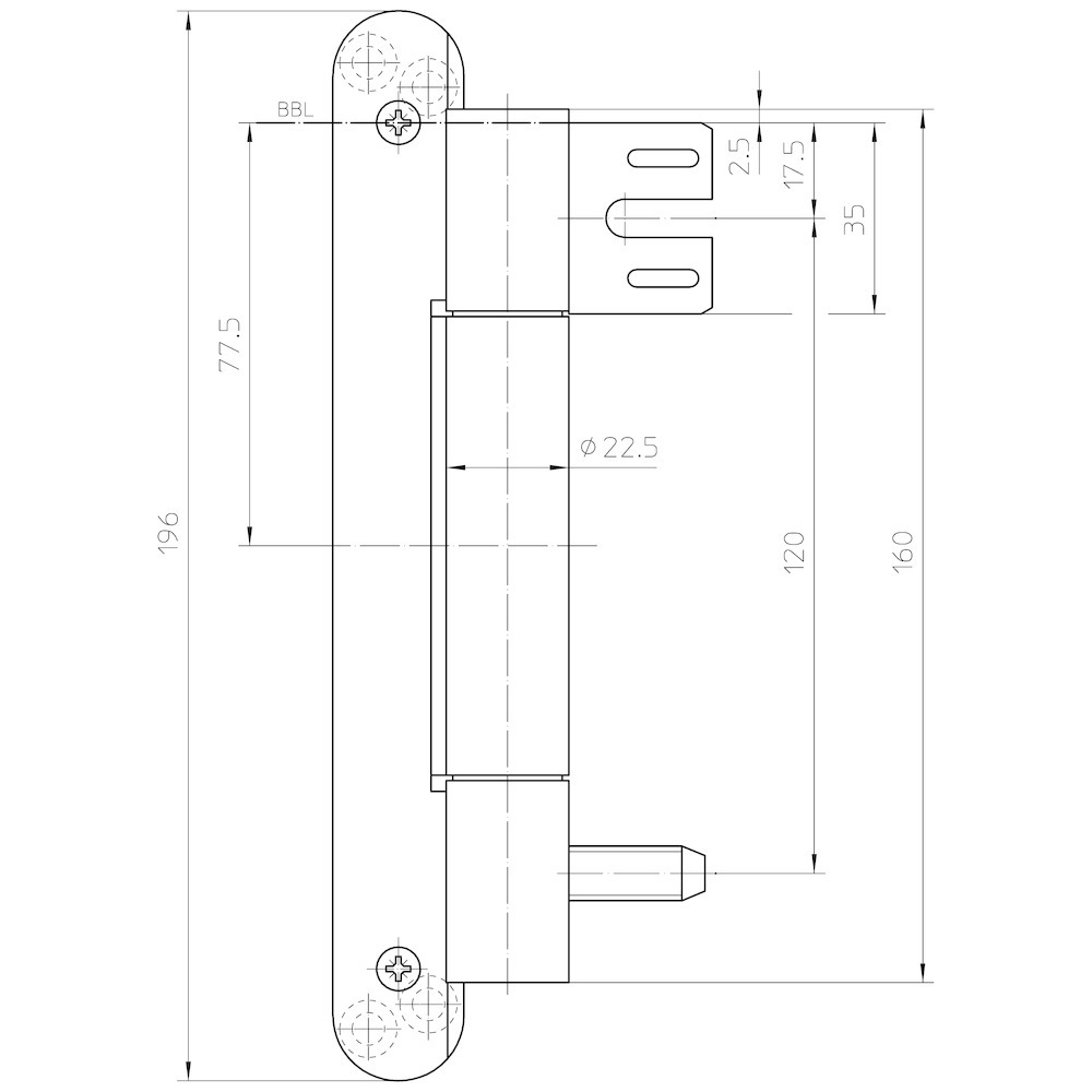 SIMONSWERK, Objekttür-Band, Modell: VARIANT®, Modellnummer: VN 8937/160 U Compact, Bandkonstruktion: 2-teilig, Ausführung: als Umrüstband, DIN-Richtung: DIN Links, Material: Edelstahl, Farbton: edelstahl, Oberfläche: matt gebürstet, Kopfausbildung: Flachkopf, Lagerung: verdeckt liegende, wartungsfreie, Axial-Radial-Gleitlager, Rollenlänge: 160 mm, Ergänzung: für Aufnahmeelemente VARIANT V, für Blindeinnietmutter, Verstellbar: 3 Dimensional, Rollendurchmesser: 22,5 mm, Materialstärke: 3,5 mm, Stiftdurchmesser: 10 mm, Tragkraft pro Flügel (1 x 2 m) bei zwei Bändern: 160 kg, Seitenverstellung min.: -3 mm, Seitenverstellung max.: 3 mm, Höhenverstellung min.: -3 mm, Höhenverstellung max.: 3 mm, Andruckverstellung min.: -1 mm, Andruckverstellung max.: 1 mm, Befestigungsart Flügelteil: zum Anschrauben, Höhe Flügelteil: 196 mm, Befestigungsart Rahmenteil: zum Einstecken, zum Eindrehen, Höhe Rahmenlasche: 35 mm, Anwendung: Stahlzarge, Fräserdurchmesser: 24 mm, Befestigungsabstand Rahmenteil: 120 mm, Stiftausführung: innenliegend, verdrehsicher, Schraubstift, Schraubendurchmesser: 5 mm, Schraubenlänge: 50 mm, Türwerkstoff: Holz, Stahl, Funktionsbereich: Feuerschutz, Rauchschutz, Feuerbeständigkeit: Klasse 1, Korrosionsbeständigkeit: Klasse 5, Türausprägung: gefälzte Türen, kombinierbar mit: Blindeinnietmutter M 10, V 8600, V 8610